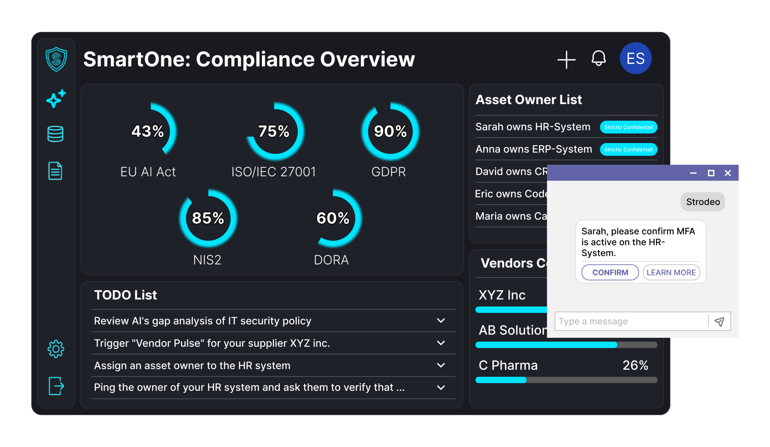 Stop the email chaos. Strodeo automatically monitors your vendor compliance and pings internal asset owners via MS Teams to collect missing evidence on autopilot